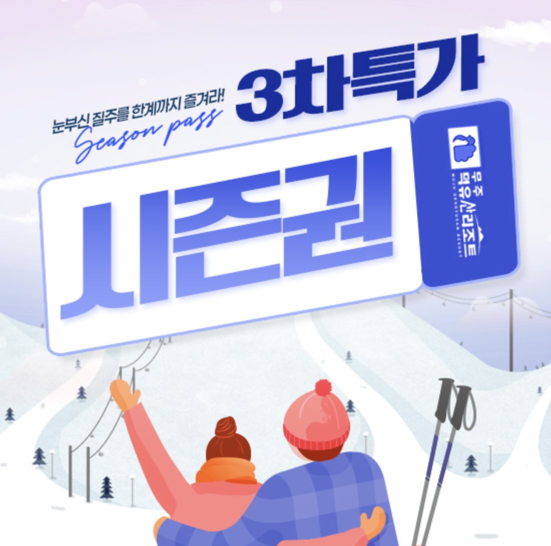 시즌 후반전을 위한 무주리조트 스키장 시즌권 3차 특가 판매가 시작되었습니다!