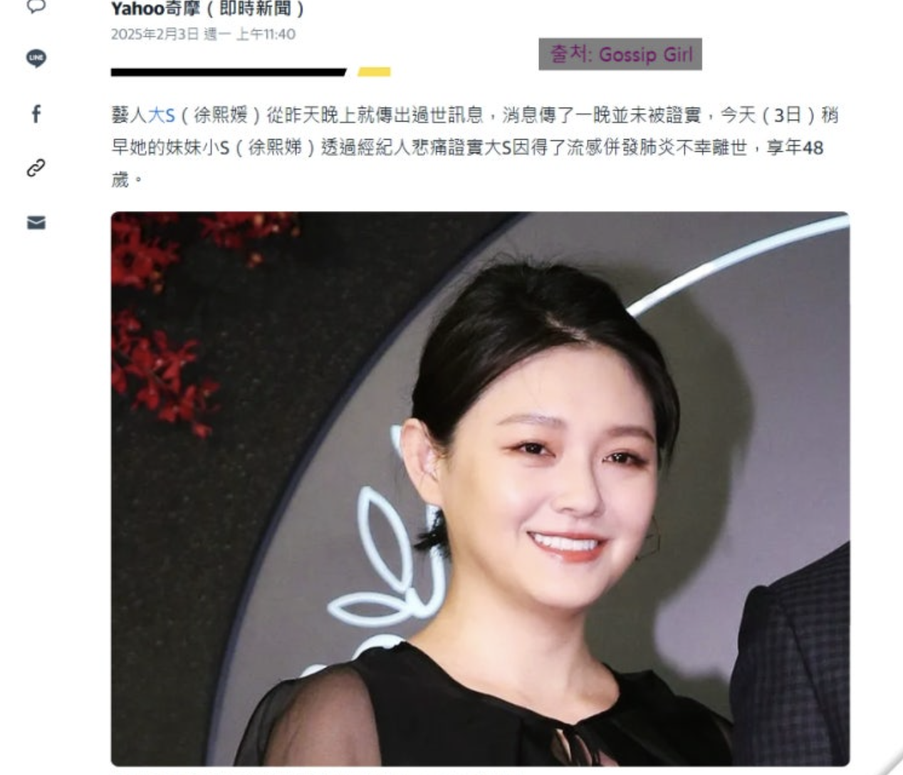 2025년 2월, 대만 연예계 스타 서희원(大S)의 갑작스러운 사망 소식이 전해지며 아시아 전역에 큰 충격을 안겨주었습니다. 48세라는 젊은 나이에 세상을 떠난 그녀의 사인은 폐렴으로 밝혀졌습니다. 남편 구준엽의 공식 입장과 함께, 이번 사건을 둘러싼 다양한 이야기들을 자세히 살펴보겠습니다.