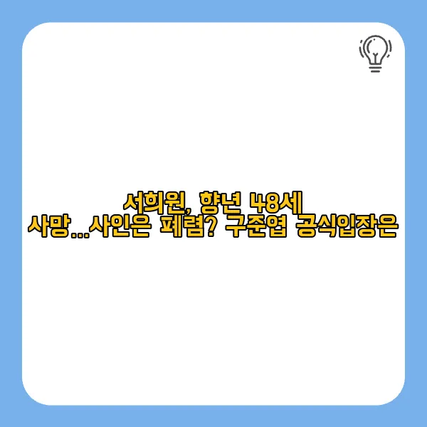 서희원, 향년 48세 사망…사인은 폐렴? 구준엽 공식입장