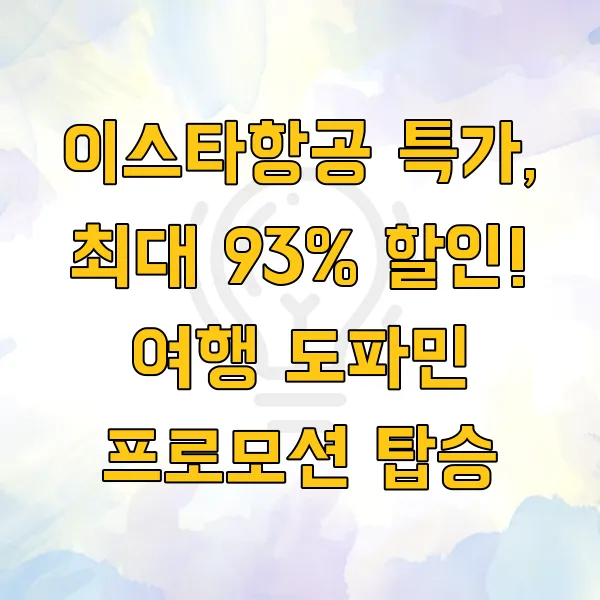 이스타항공 '여행 도파민 프로모션'은 단순한 항공권 할인을 넘어 잊지 못할 여행 경험을 선사하는 기회입니다. 지금 바로 이스타항공과 함께 여행의 설렘을 만끽하고 꿈꿔왔던 여행을 현실로 만들어보세요! 새로운 문화, 맛있는 음식, 그리고 잊지 못할 추억들이 여러분을 기다리고 있습니다!✈️